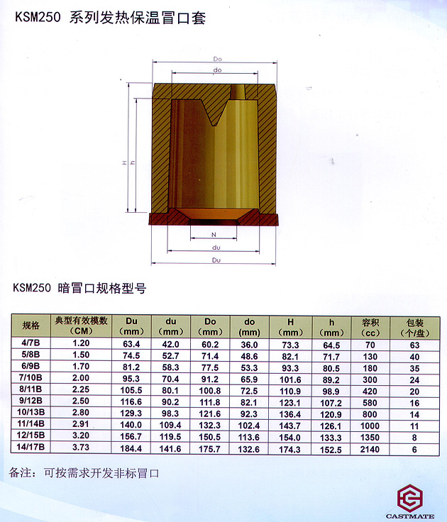 產(chǎn)品類別: 發(fā)熱保溫冒口套—KSM250系列 >> KSM250 暗冒口