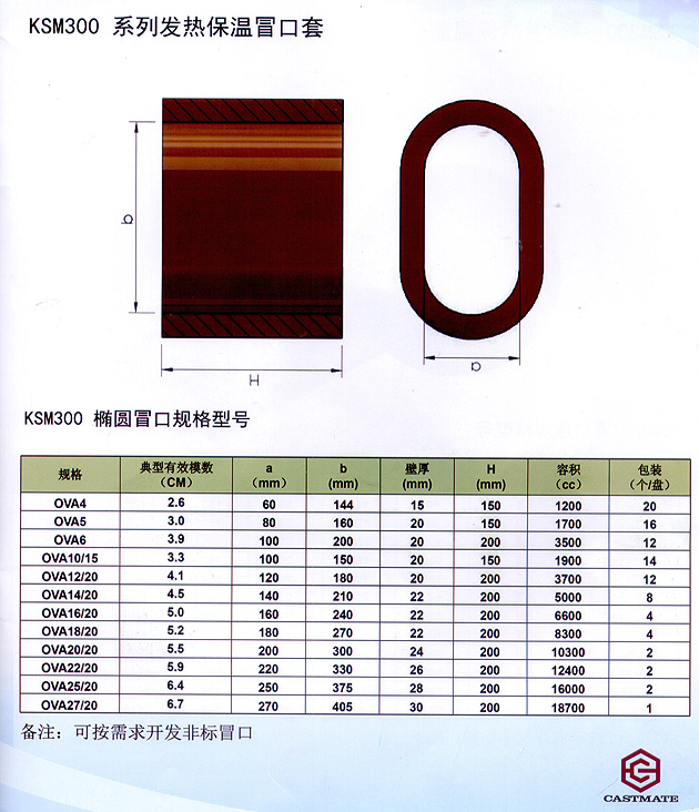 產(chǎn)品類別: 發(fā)熱保溫冒口套—KSM300系列 >> KSM300 橢圓冒口